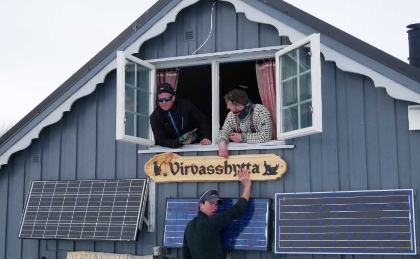 På Virvatnet møtte vi kjente. Terje, en kollega fra Statnett og kompisen hans var på tur med hundespann. De hadde slitt med sledene over isen hvor det var mye overflatevann. De hadde heller ikke fått så mye fisk som de hadde håpet, men de virket likevel glad og fornøyd i lyngen der de satt og koste seg med «forskjellig».