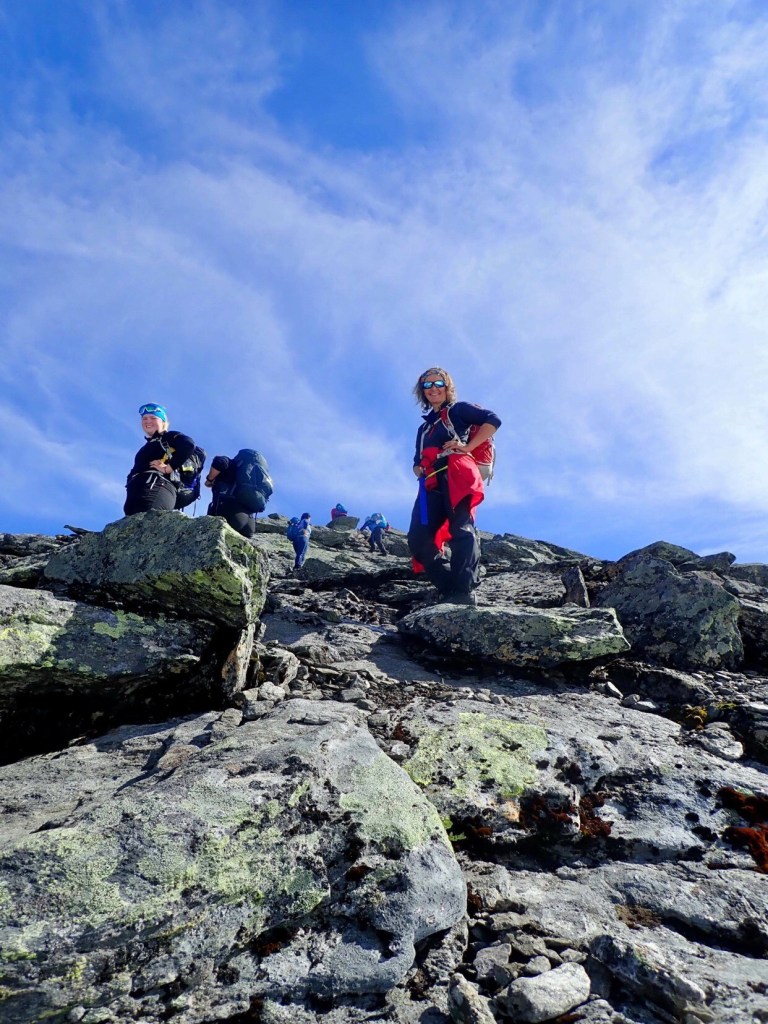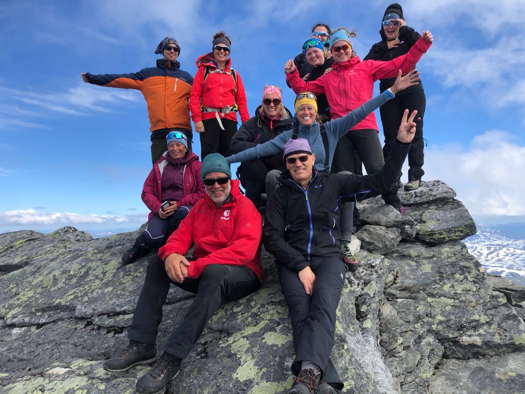 Etter 5,5 timer var alle i gruppa kommet til toppen. Da var stemningen upåklagelig, og gledesropene kunne høres i mils omkrets. Det var nok mange som mottok en skryte selfie fra toppen av Oksskolten denne ettermiddagen.