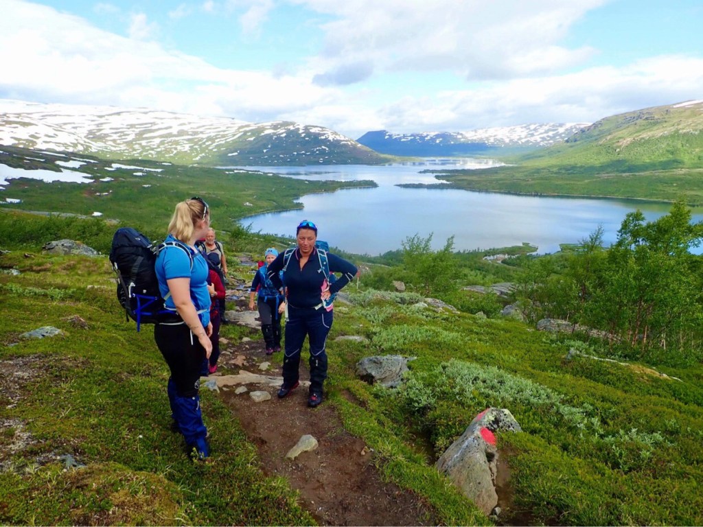 Det var bratt og vi gikk en del i snø det første stykket. Musklene jobbet, og jeg tror det var flere enn meg som kjente svetten renne. Da var det fint at været var fabelaktig, og at stemningen var god til tross for slitet.