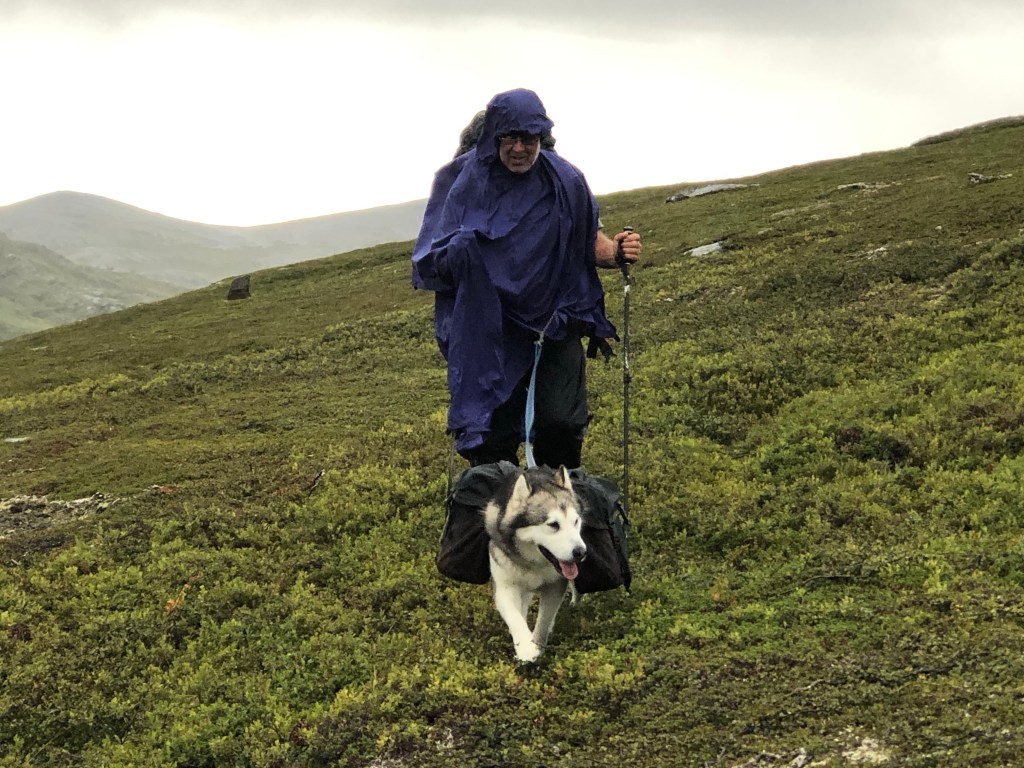 Siden det var meldt så dårlig vær fikk hundene ligge inne. Det satte de pris på for uværet kom med et brak i løpet av kvelden. Det pøste ned og vinden jobbet med teltduken, men vi holdt oss tørre i teltet og syntes det hadde vært en bra dag.