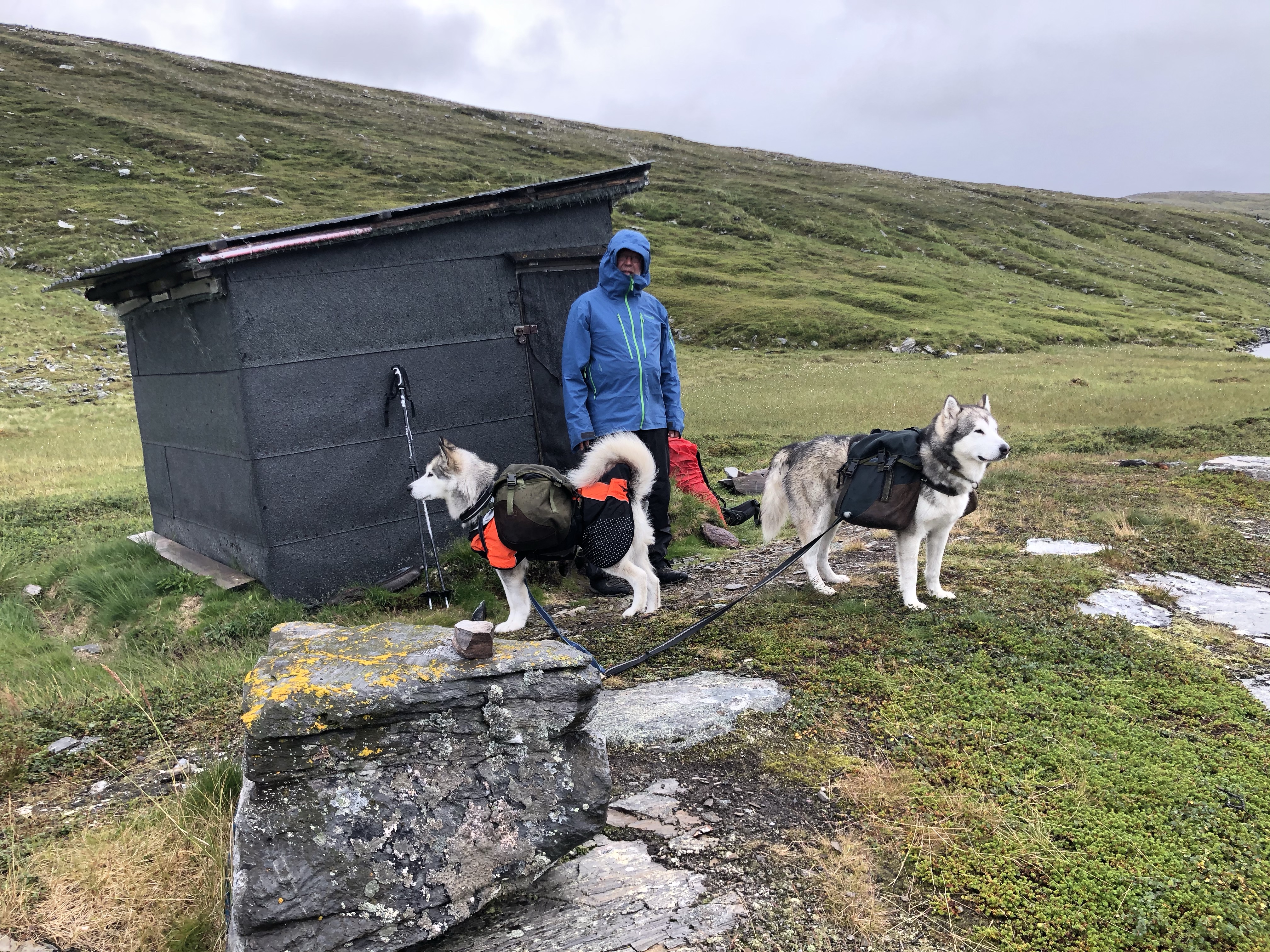 Regnet ført til at elvene ble store, men skoene våre var så våte at det spilte egentlig ikke noe rolle for oss. Vi gikk som to programmerte roboter til en åpen reindrifthytte, Stohpojohka.