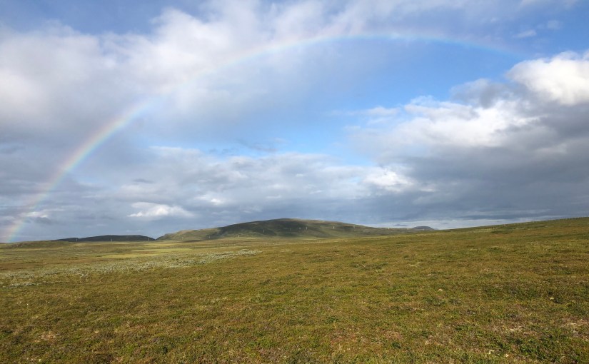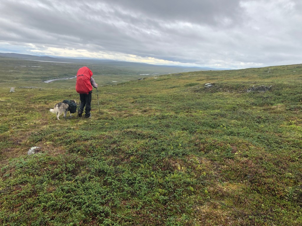 Selv i overskyet og til tider litt regn var Finnmarksvidda et flott skue. Vi gikk over stadig nye myrer og høydedrag mens vi hadde denne storslagne naturen rundt oss.