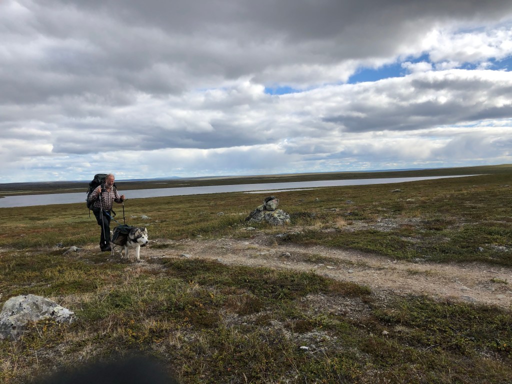 Etter noen km i skogen bar det opp og over Bealgevàrri. Stien var fin, været bra og sekkene lette likevel gikk det litt tungt. Det var som om lufta hadde gått ut av ballongen.