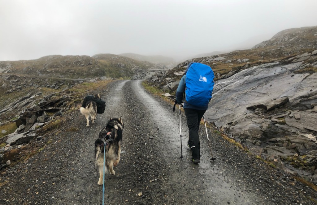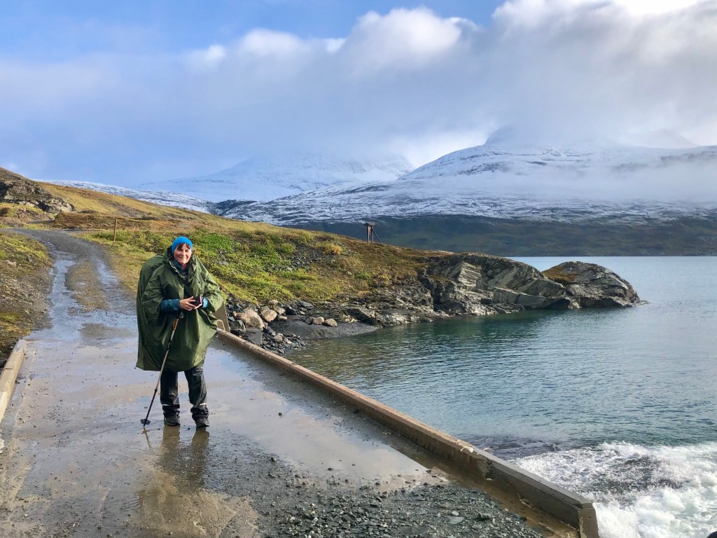 Vi våknet ikke akkurat til strålende sol, men det var heldigvis mindre vind. Den nye turkammeraten min var ivrig etter å komme i gang. Frokost og hyttevask skjedde i en fei, og allerede klokken halv åtte stod vi utenfor Lomihytta klar for en ny dag i Junkerdalen nasjonalpark.