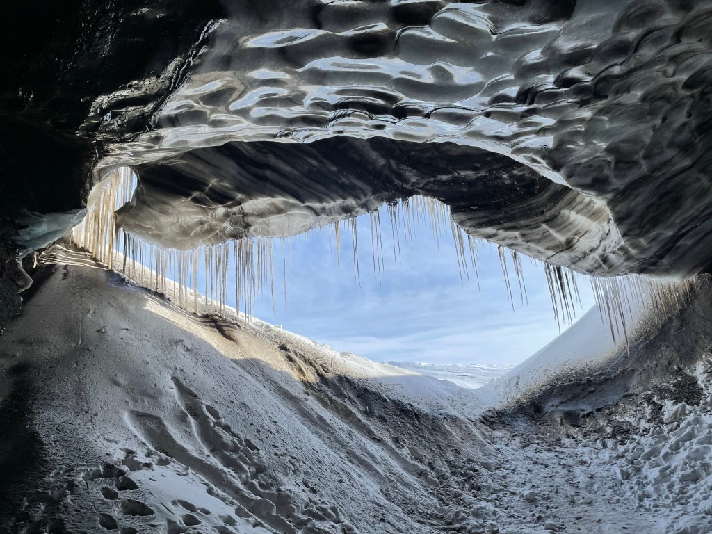 Dagen etter kjørte vi en annen rute tilbake. Vi var innom en fantastisk isgrotte på veien.