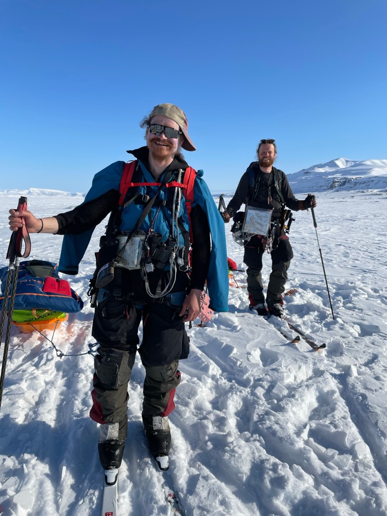 Vi våknet til strålende sol og 15 minusgrader. Klokka ni var alle ferdig pakket. Etter et kort morgenmøte og riving av felles latrine kunne vi skli ned på havisen igjen, og fortsette turen i Nordre Isfjord nasjonalpark.