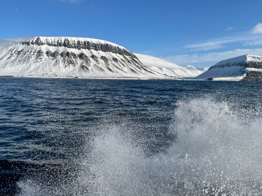 Båtturen ble fantastisk slik vi hadde håpet. Ubeskrivelig vakkert. Isen i havet, fjellene, snøen og sola, alt var perfekt. Forlandsundet var et høydepunkt. Fjell og hav på alle kanter og et yrende fugleliv. Vertskapet på båten serverte Cava, og dagen kunne ikke vært bedre.