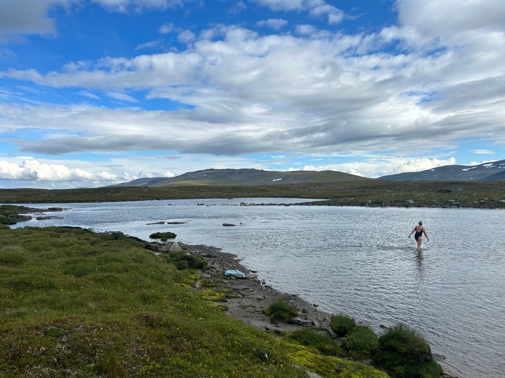 Etter 15 km var vi nede ved Namsvatnet. Der var vi heldige og traff eieren av skyssbåten. Vi tok skyss over Namsvatnet, og da vi kom over ble vi hentet med bil av den serviceinnstilte driveren av Limingen gjestegård. Det føltes fantastisk. Alt var vått. På Limingen Gjestegård i Røyrvik ble det en deilig dusj og en herlig middag. En verdig avslutting på Polarsirkelen Turlag sin tur over Børgefjell.