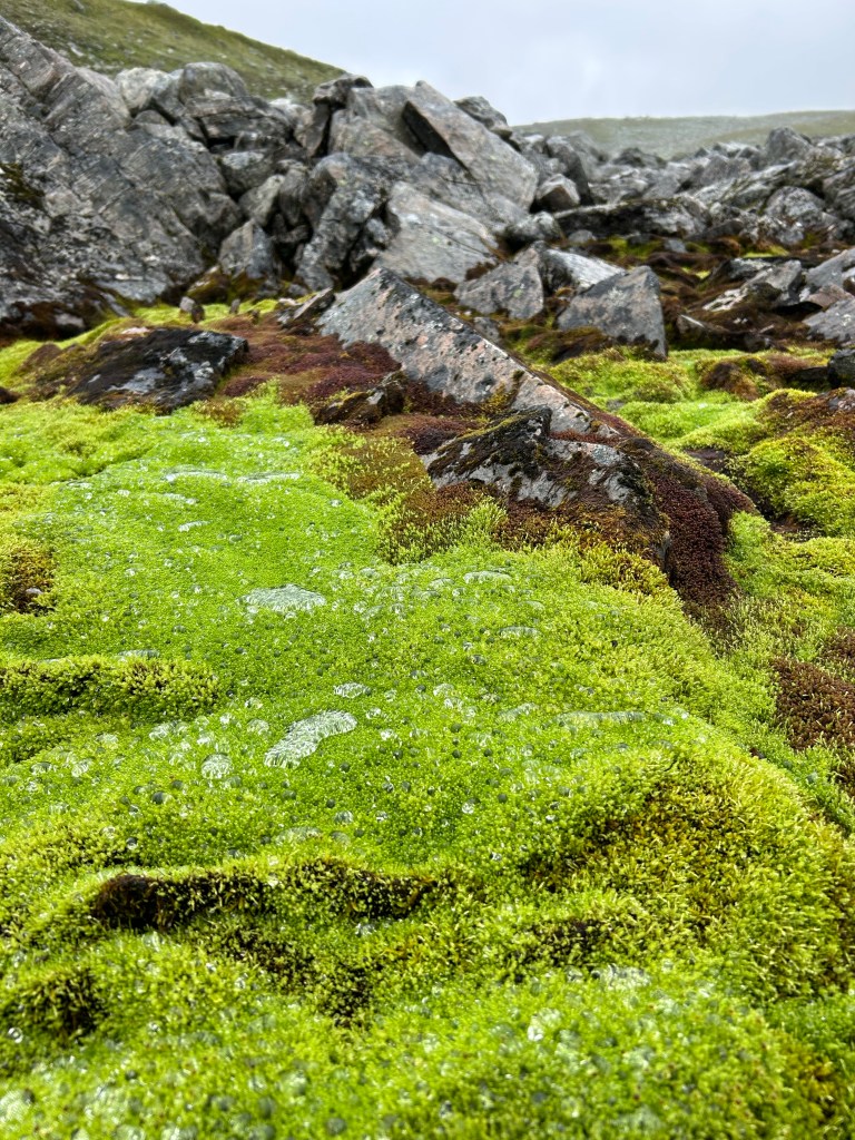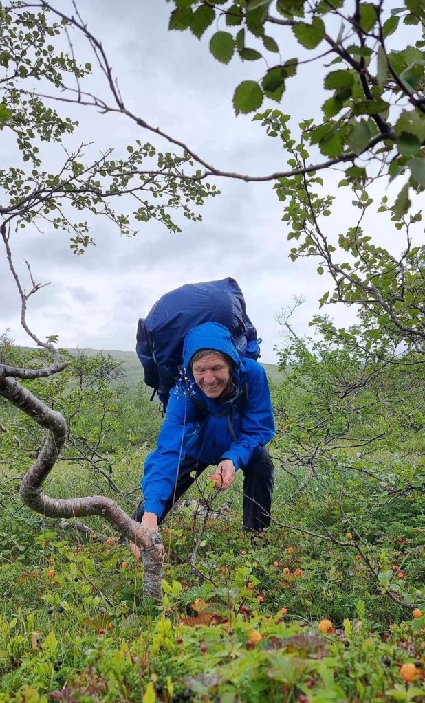 Vi passerte enda flere multemyrer, og tok oss tid til å smake på fjellets gull selv om regnet hadde kommet for fult.