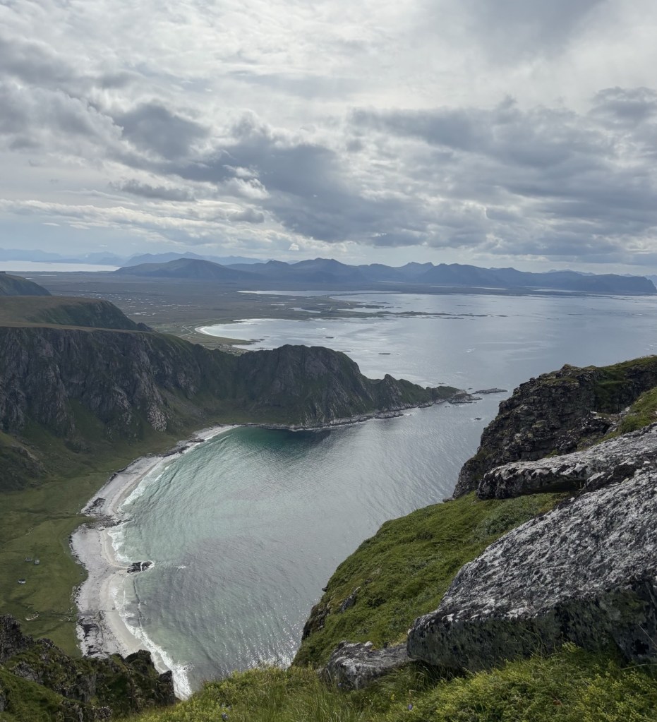 Etter turen var vi innom den berømte hvite fine Bleikstranda. Det er mulig å gå rett ned på stranda fra Måtinden, eller kjøre rundt som kun tar noen få minutter. Det er uansett verdt et besøk. Den hvite delikate stranda, de store skurte steinen, horisonten i det fjerne, fargene og lyden av bølger som slår. Rett og slett medisin for sjelen.