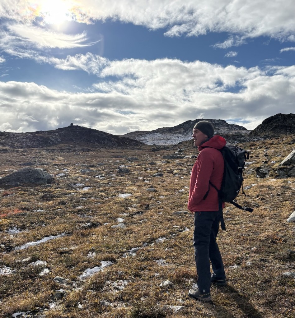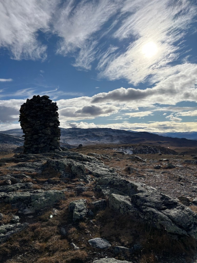 Etter hvert nådde vi toppen av Storgruvpiken. Utsikten var storslagen – Trollheimen bredte seg ut i vest, og ifølge Stig kunne man se helt til Snøhetta i sør på klare dager. Høsten viste seg fra sin beste side, og vi tok oss god tid til å nyte både utsikten og stillheten.