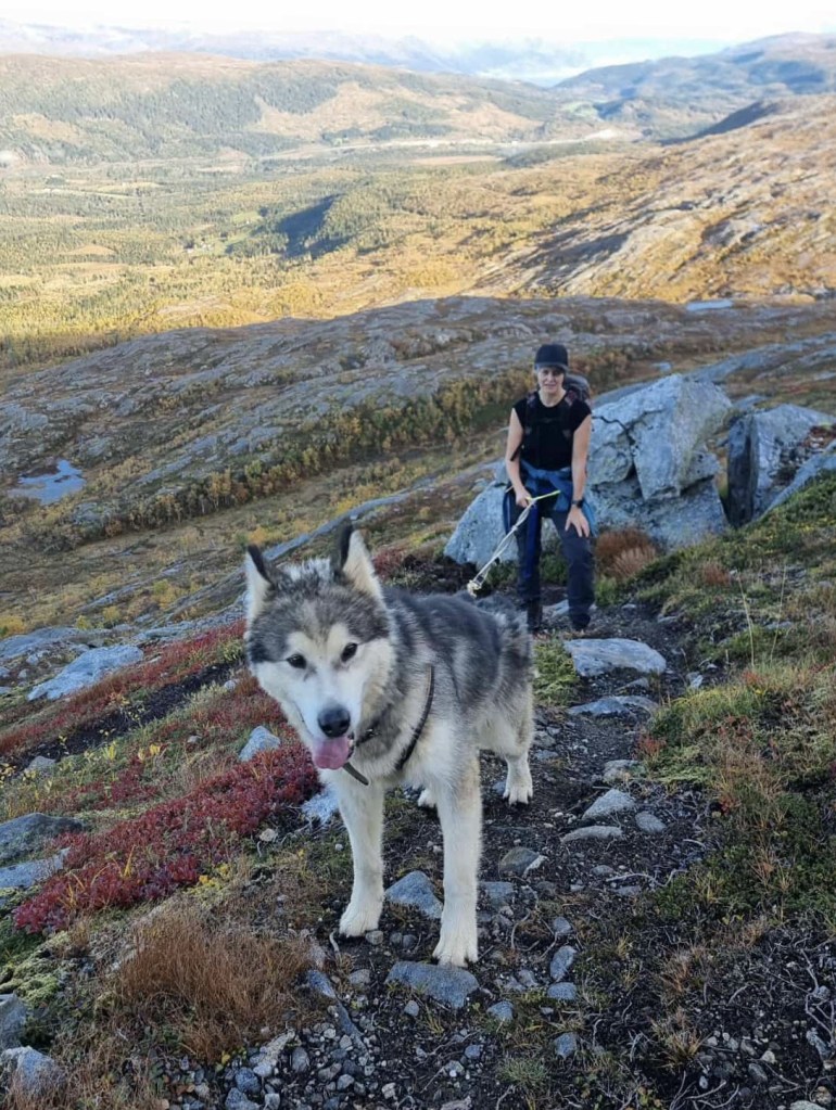 Stien gikk bratt opp, og Hilde Sofie, min gode venninne, holdt et imponerende tempo. Det var bare å henge på.