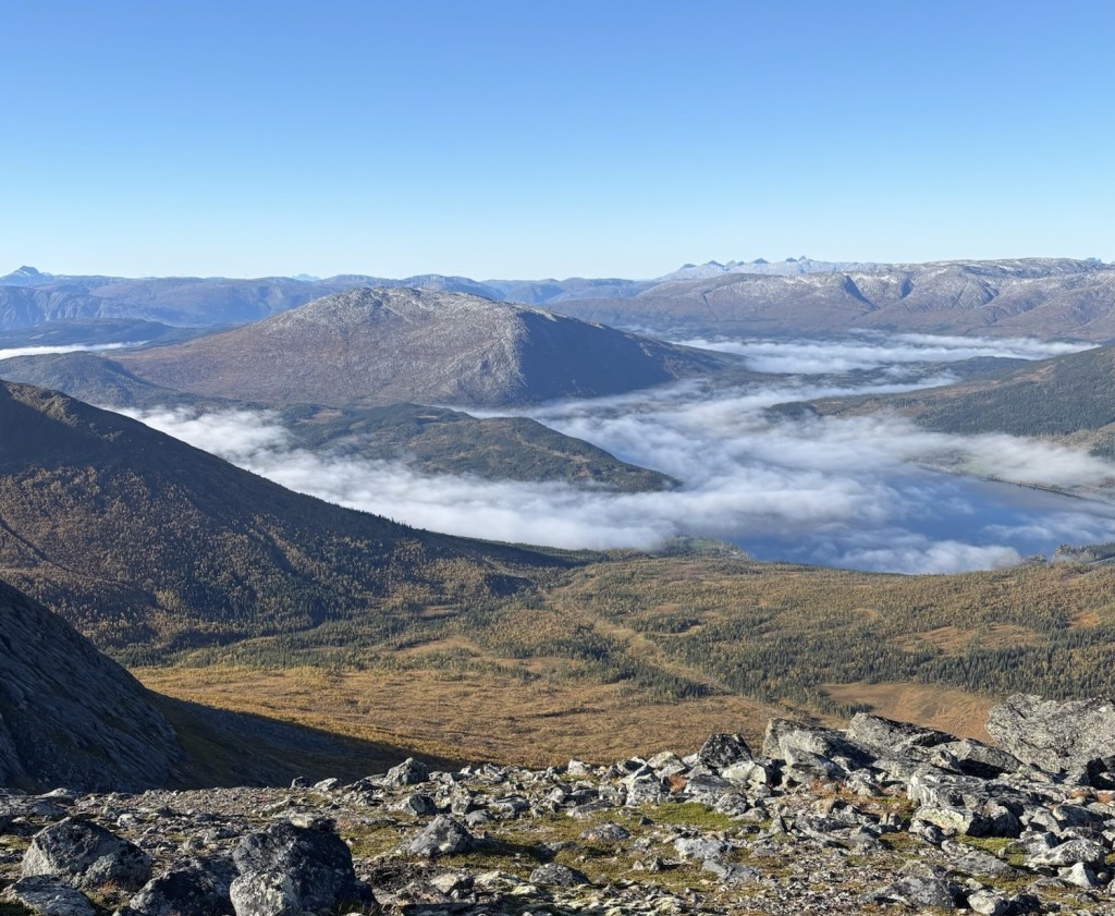 Til slutt kom vi oss opp på toppen og ble belønnet med storslagen utsikt over blant annet Røssvatnet og Okstindene.
