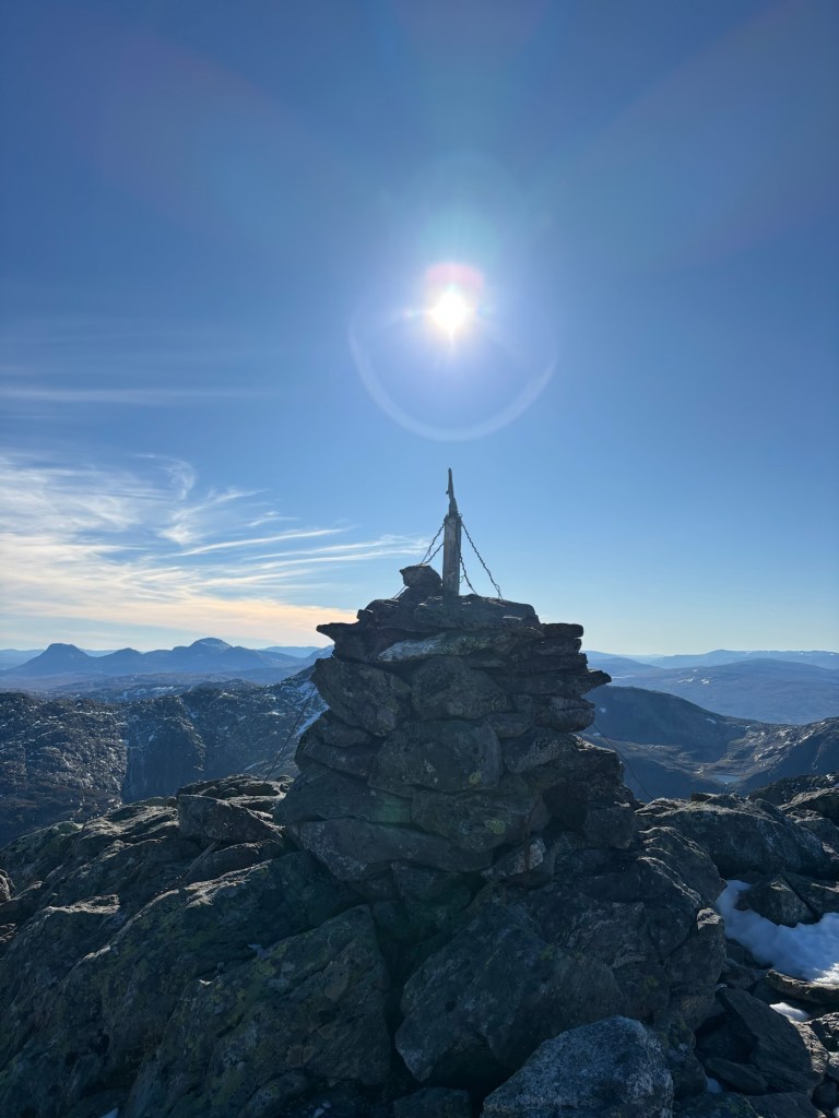 På toppen ventet en majestetisk utsikt. Det var en klar og fin dag, og vi kunne se langt i alle retninger. Vi ble en stund på toppen og sugde til oss inntrykkene før vi knyttet oss sammen igjen og vendte nesen nedover.
