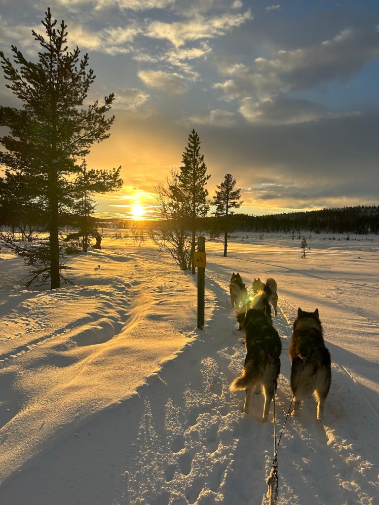 Vi kjørte parallelt med Fulufjället nasjonalpark. Da vi nærmet oss Sörsjöen gikk tempoet til hundene opp. Etter fem dager var de glad for å komme heim til en velfortjent hvile, og jeg unte dem selvsagt det. De hadde vært veldig flinke. GPSen viste 46 km. Totalt hadde de gått 160 km på fem dager.