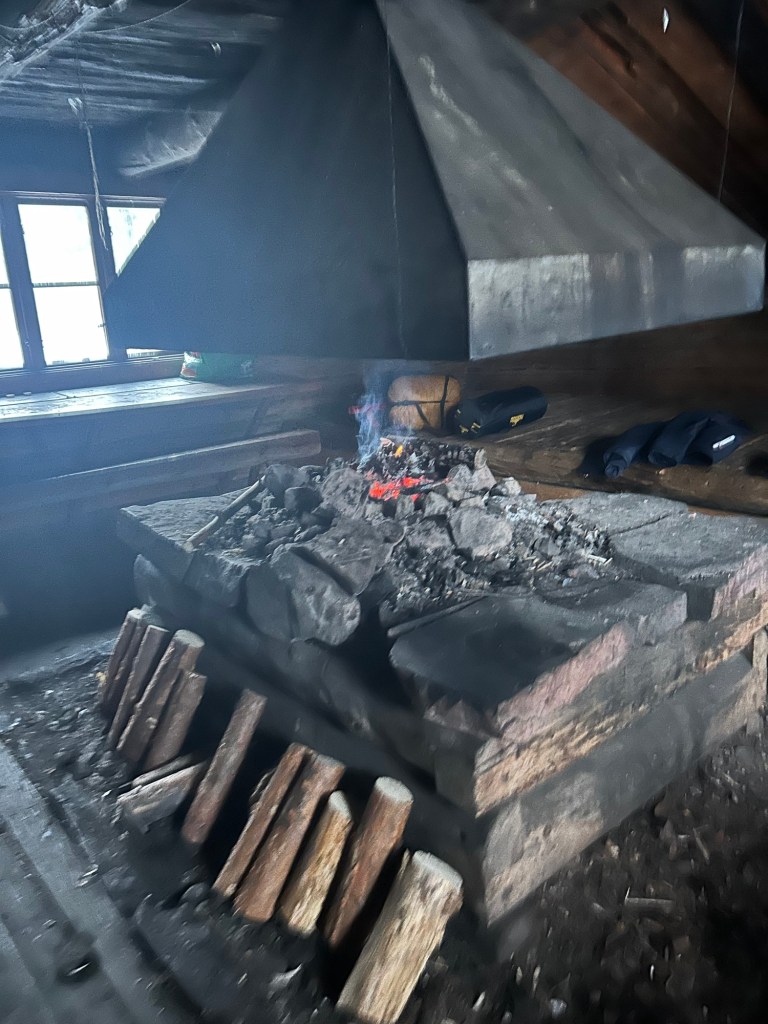 Da GPSen viste 43 km var vi kommet til en gammel tømmerstue, Brottbäckstugan.