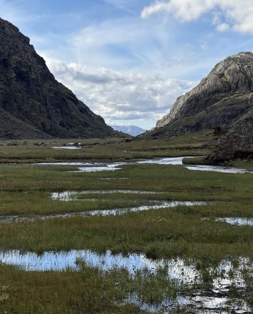 Videre mot Grønndalen. Neste dag fortsatte Bente og jeg videre etter en T-merket sti mot Grønndalen, mens resten av gruppa returnerte til Innerdal gård. Landskapet vi beveget oss gjennom var vilt, vakkert og helt unikt – det svarte til alle forventninger.