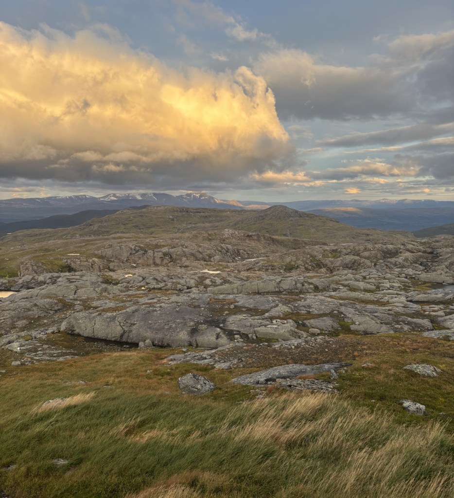 Vi passerte turens høyeste punkt på 1018 moh og kunne nyte en fabelaktig utsikten mot Sandan bak oss.