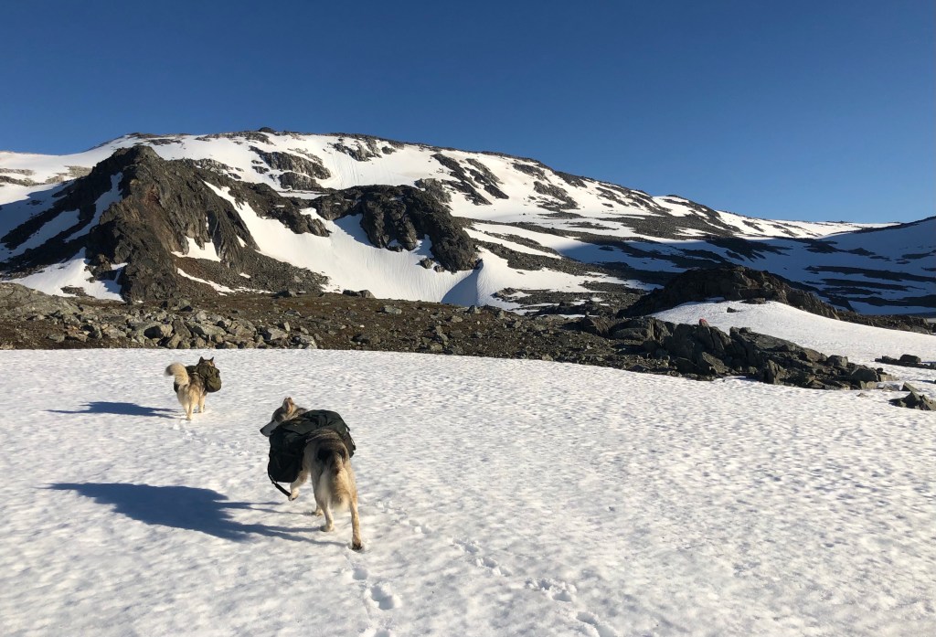 Jeg hadde pakket lett, 18 kg på ryggen og 6 kg i hver av kløvene. Mye kjekt utstyr lå igjen heime, men mat for 14 dager til meg og hundene veier en del selv om alt var frysetørret.