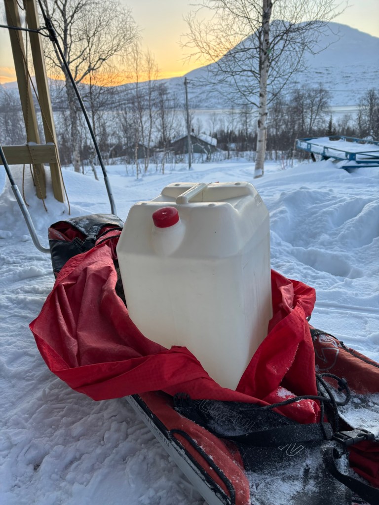 Det går mye hundemat på en slik tur, 5 sekker. Vi valgte å bestilte det direkte til Longyearbyen.