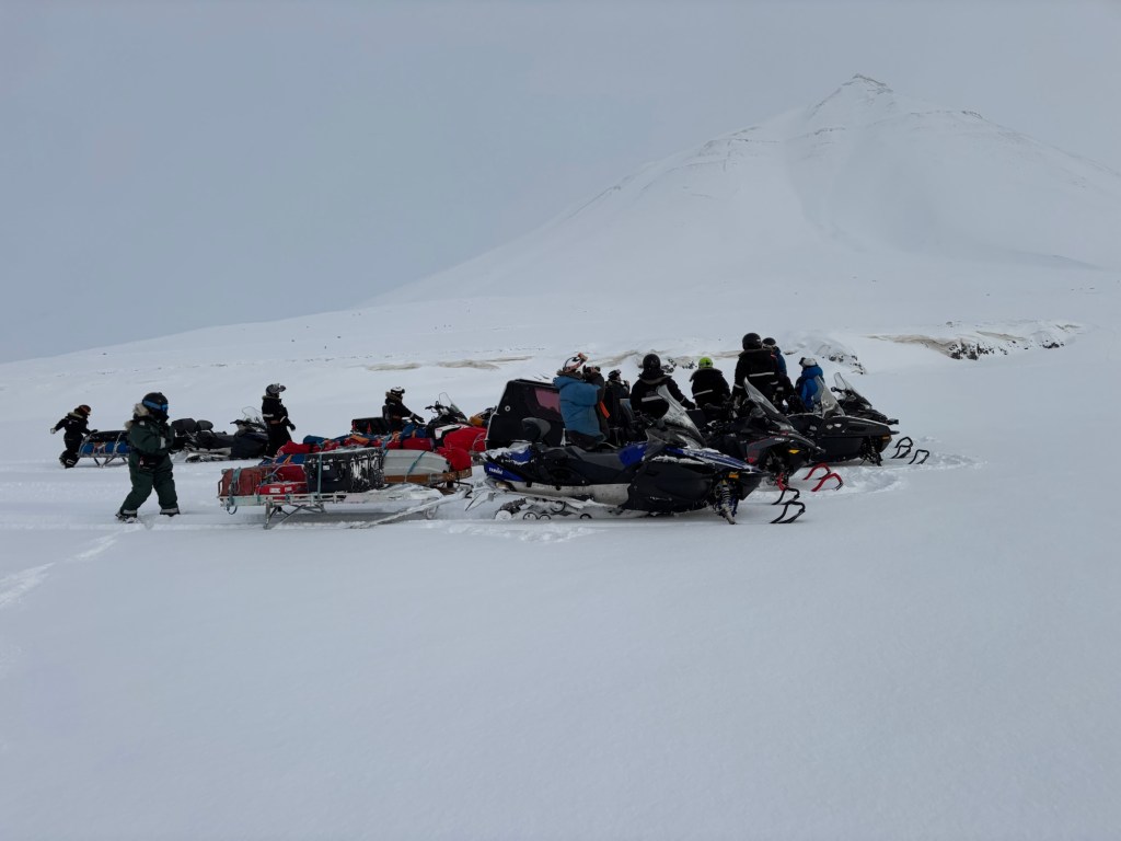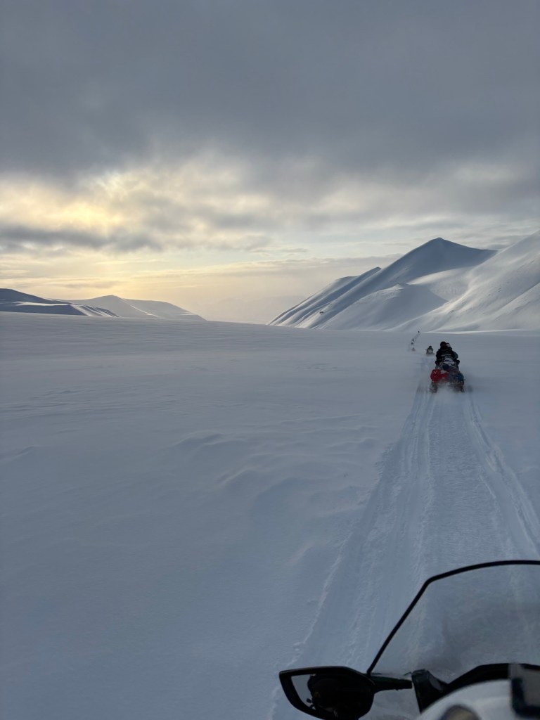 Det var en glad og forventningsfull gjeng som var klar for å bli transportert ut med scooter til startpunktet til vintereventyret « Svalbard på langs»