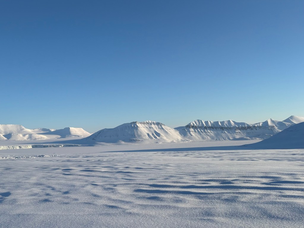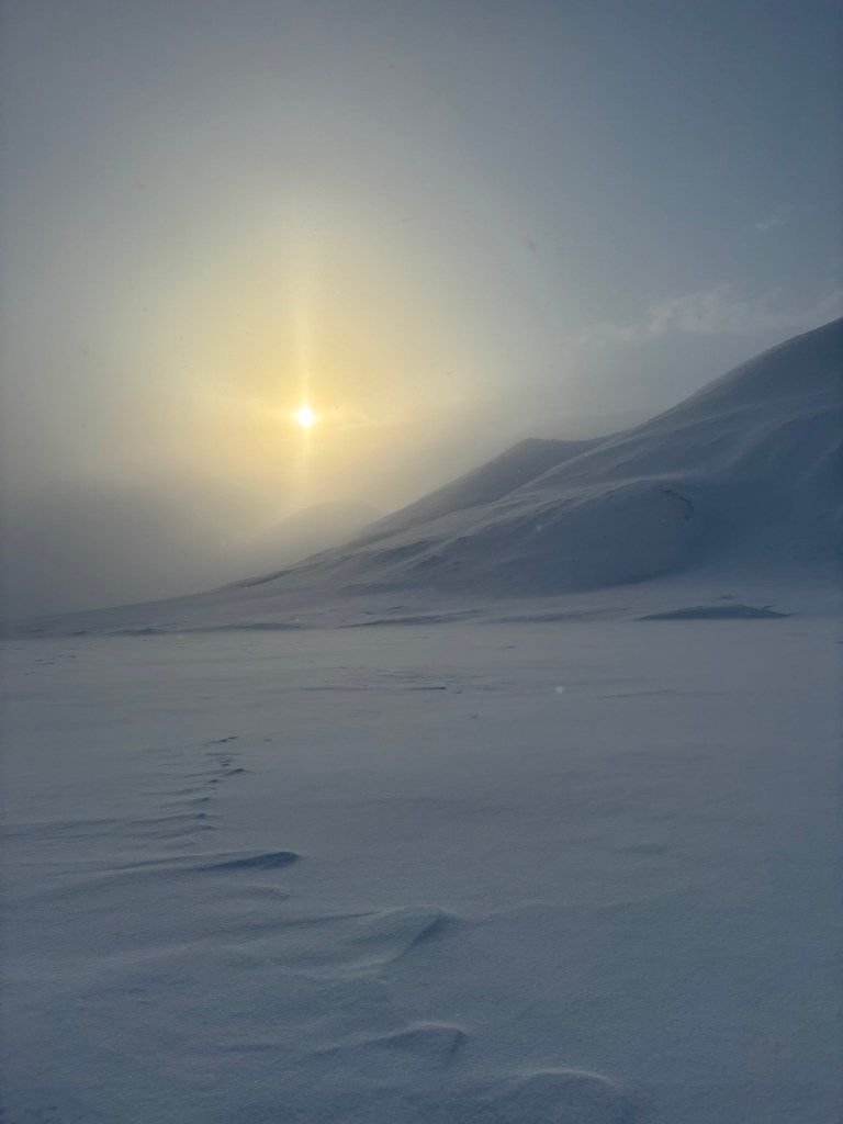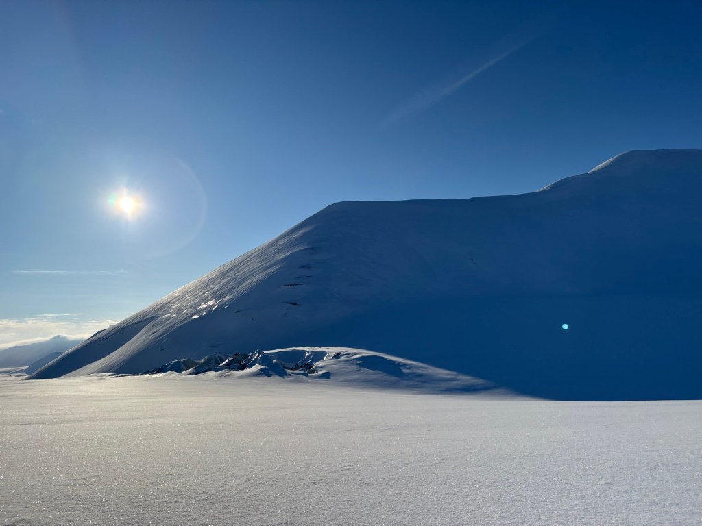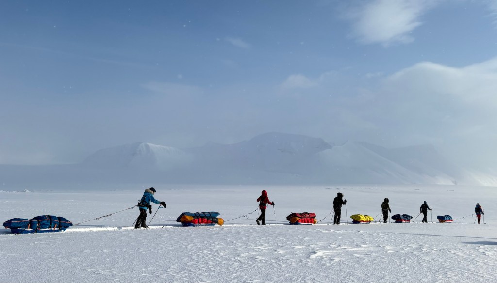 Været skiftet fort på Svalbard, fra sterk vind og snø til litt vind, kaldt, klart og fint. Tungt føre var det fortsatt, men sol og blå himmel gav motivasjon og godt humør.