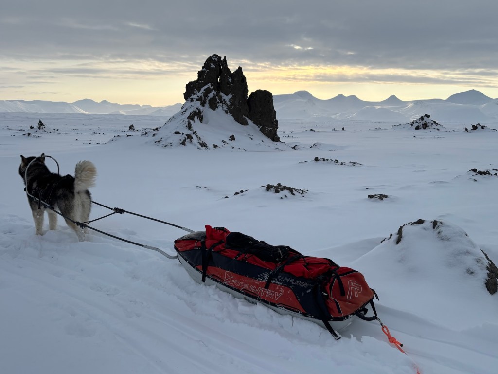 Dakota var erfaren. Hun hvilte når hun kunne og bidro når hun måtte. En kjempe flink ekspidisjonshund.
