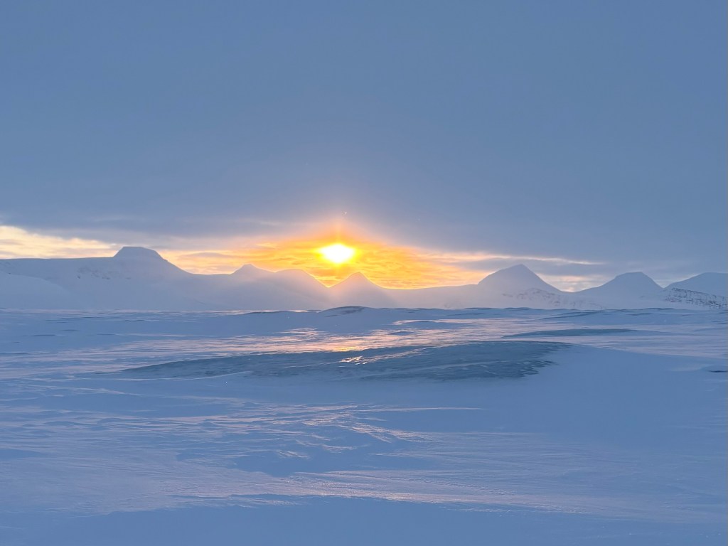Jeg hadde isbjørnvakt fra 04.00 til 06:00, og fikk med meg en nydelig soloppgang. Det kom til å bli en fantastisk dag, klart og kaldt. Jeg gledet meg.