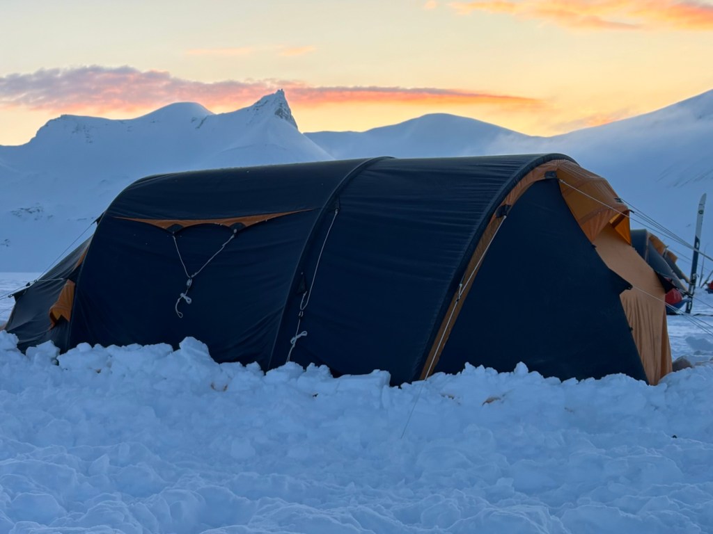 Etter 6 økter var vi utslitte og hadde som jeg spådde kun gått skarve 11 km. Vi var kalde og våte så det var kjempe deilig å komme inn i teltet litt tidligere enn vanlig. Jeg kjente meg både takknemlig og lykkelige da jeg krøp ned i posen til lyden av vinden som jobbet med teltduken. Det er ofte slik at jo hardere dag ute jo større blir godfølelsen når du kommer inn. Og det beste, jeg hadde ikke isbjørnvakt.