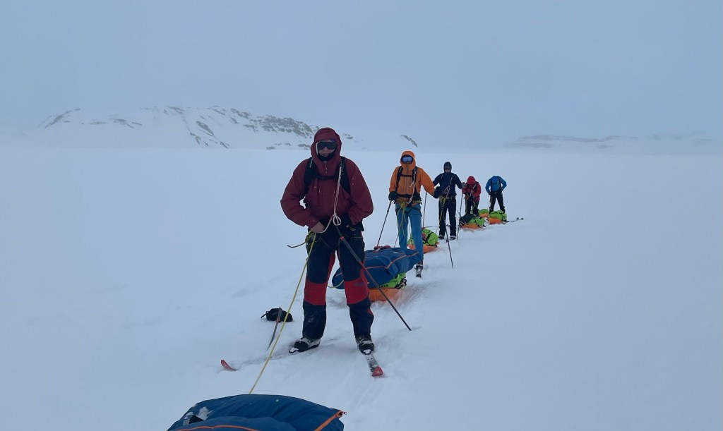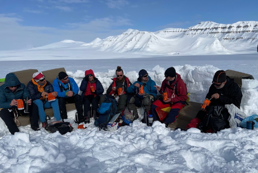 Vi var totalt 5 stykker som skulle reise sammen på tur med Kristin som turleder. Alle hadde 5-6 Alaska Malamute foran sleden, og sledene var fylt med utstyr og masse mat til to og firbente. Hundene var glade og gira, og de syntes temperaturen var perfekt.