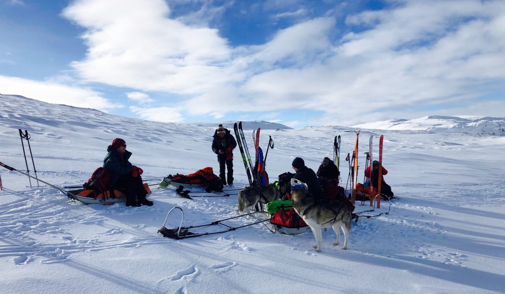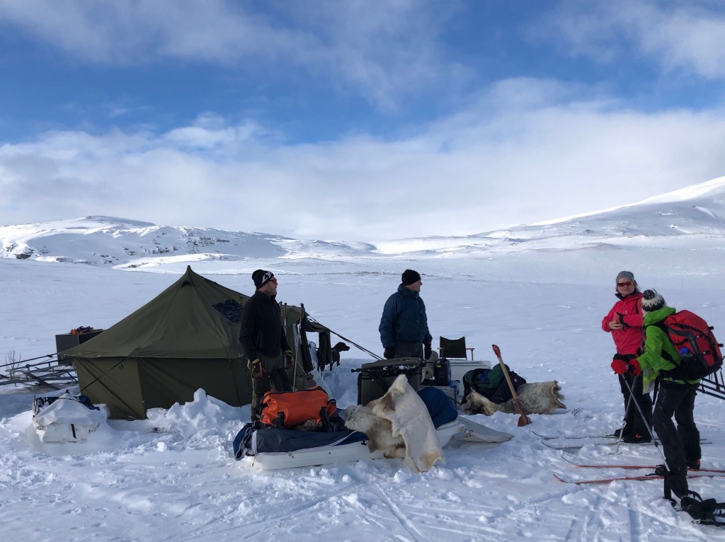 Det var bra at alle hadde med seg vindsekker og jervenduker når vi tok pause for vinden og den lave temperaturen førte til rask nedkjøling hver gang vi stoppet.
