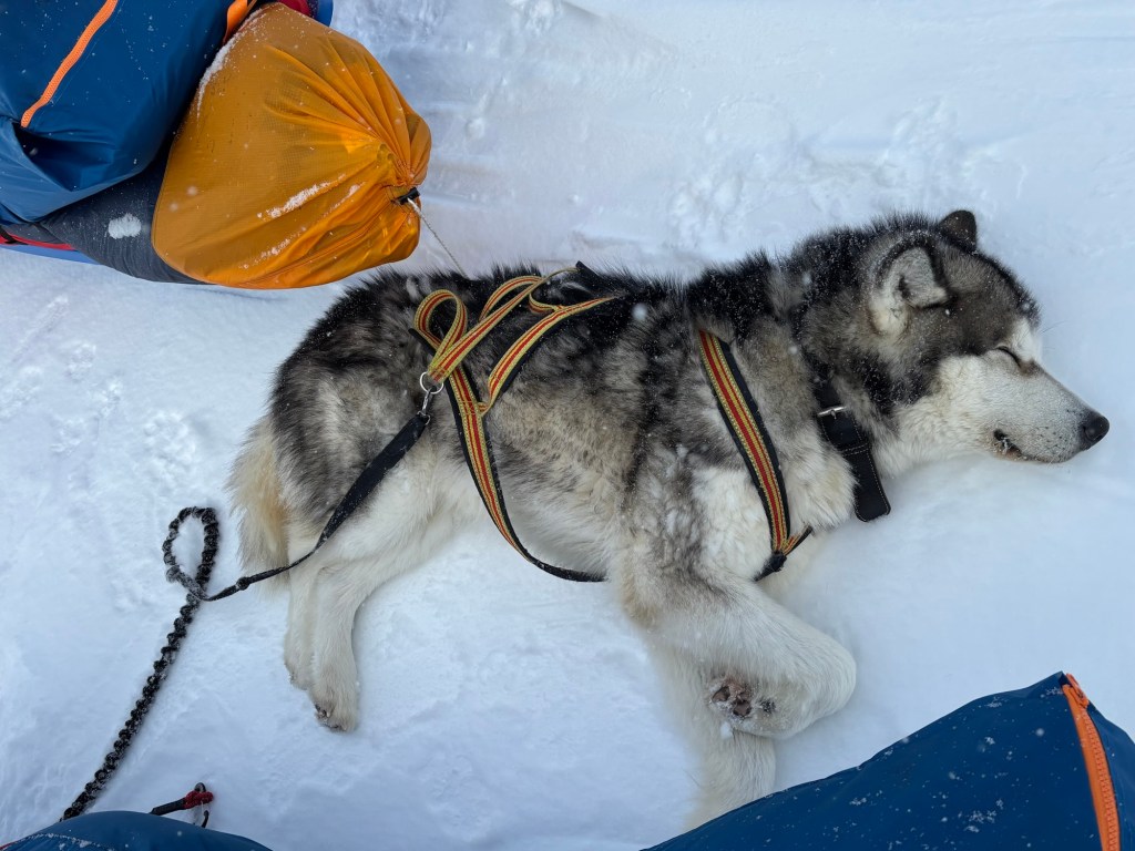 Vi hadde startet tidlig for å sikre godt skiføre og for å skåne polarhundene for varmen. På Rabothytta var det derfor stille da vi kom. Vertskapet for helga var ikke like tidlig våken som oss, men det ble likevel en god pause før vi fortsatt opp til breen.
