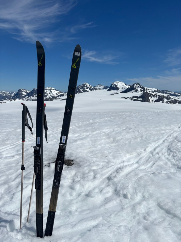 På tur ned ble det både vaffelstopp på Rabothytta og bading i Mørbekktjønna. Kaldt og forfriskende etter en varm dag på ski. Herlig avslutning på en varm og fin tur.