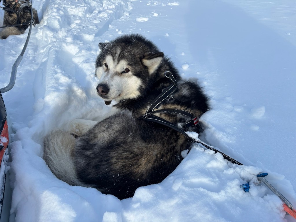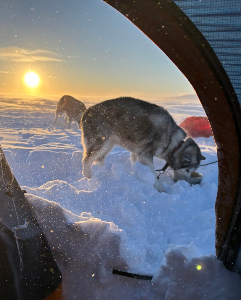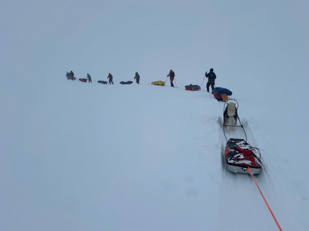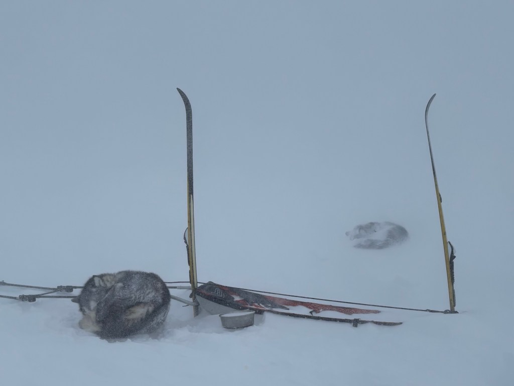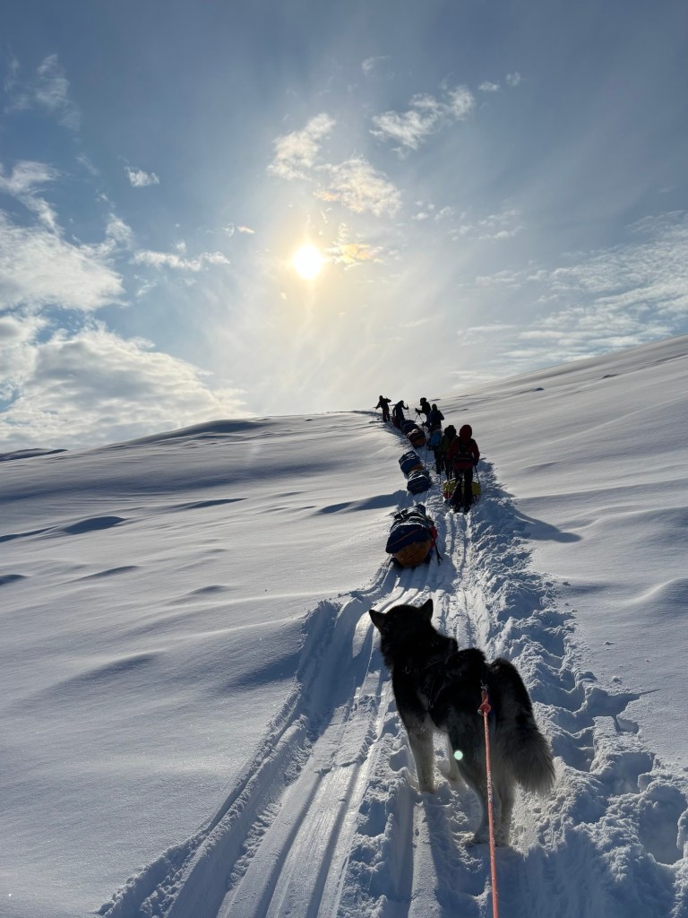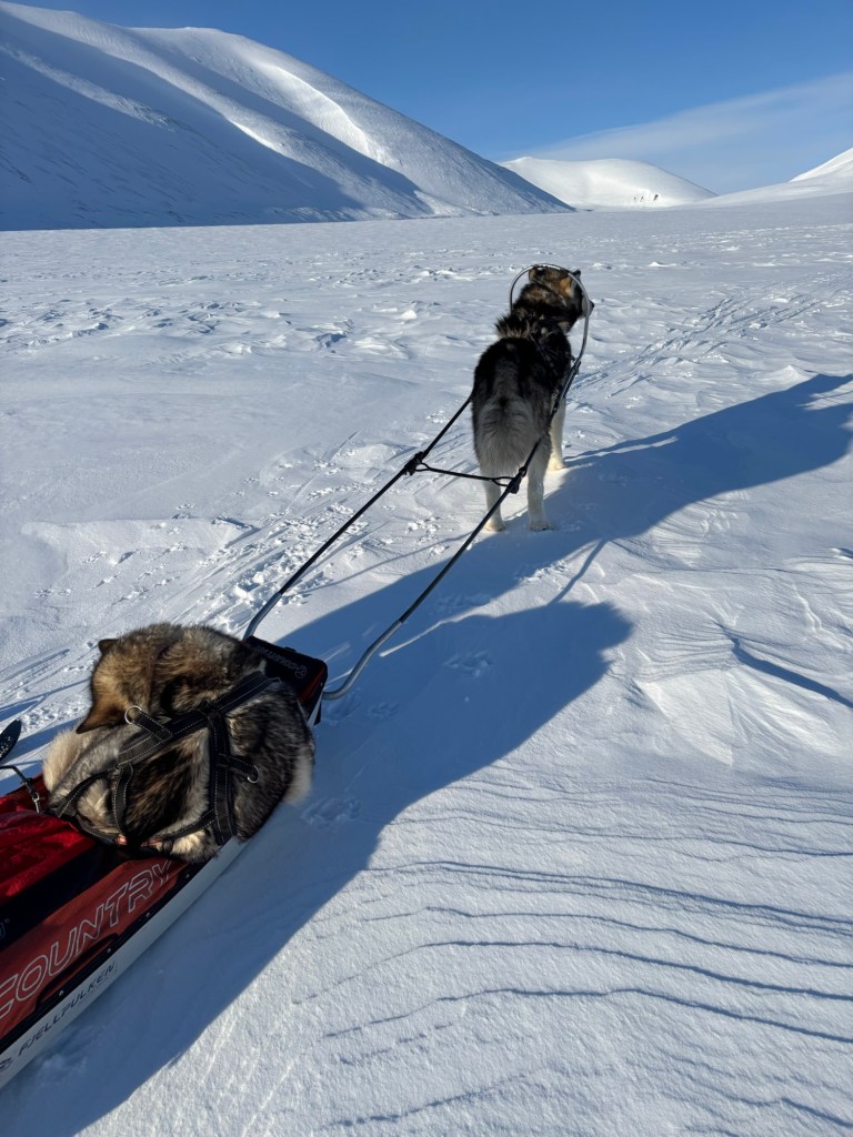 Da de dro tok de med seg hundepulken og litt «kjekt å ha utstyr» som vi hadde slitt med i snøen. Vi håpet turen videre ble lettere for både hundene og oss.