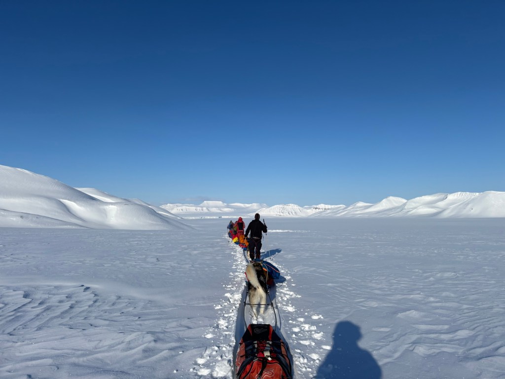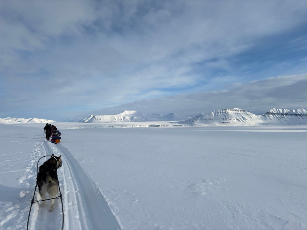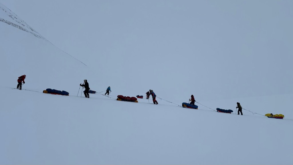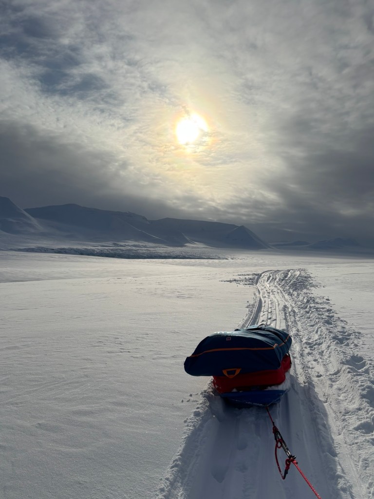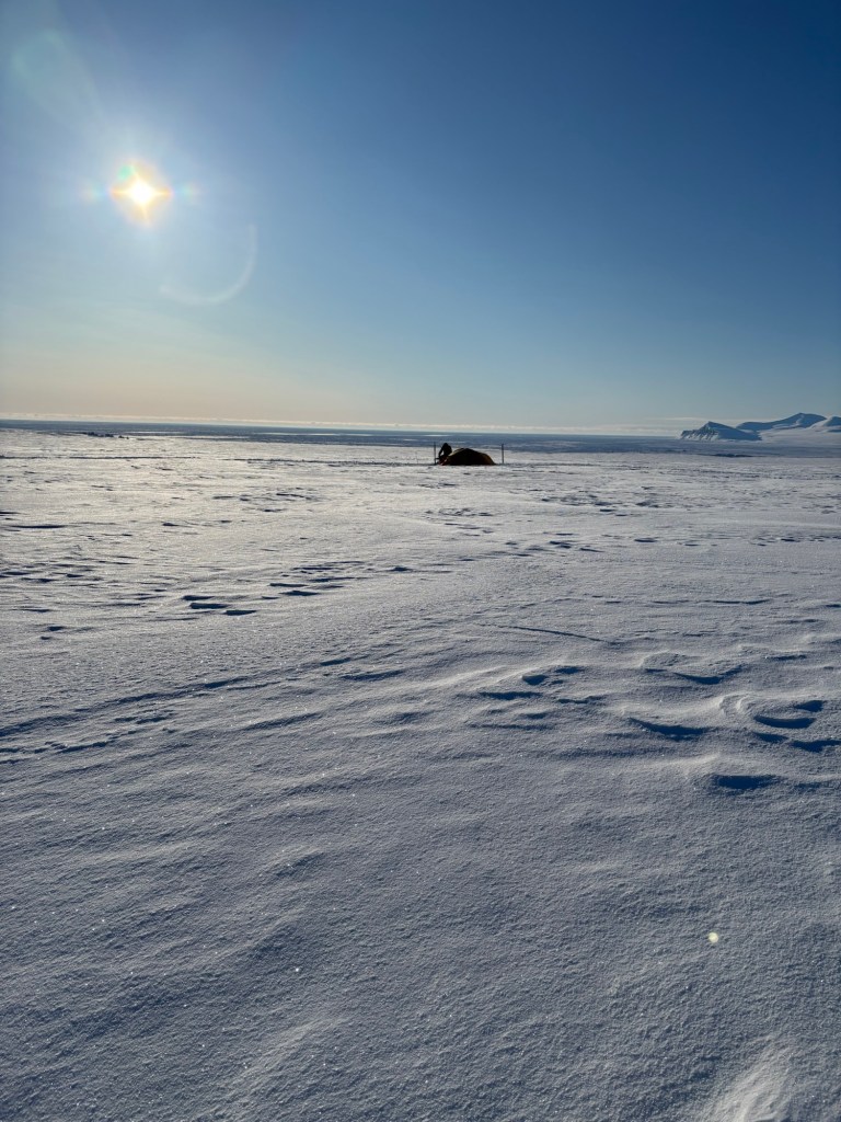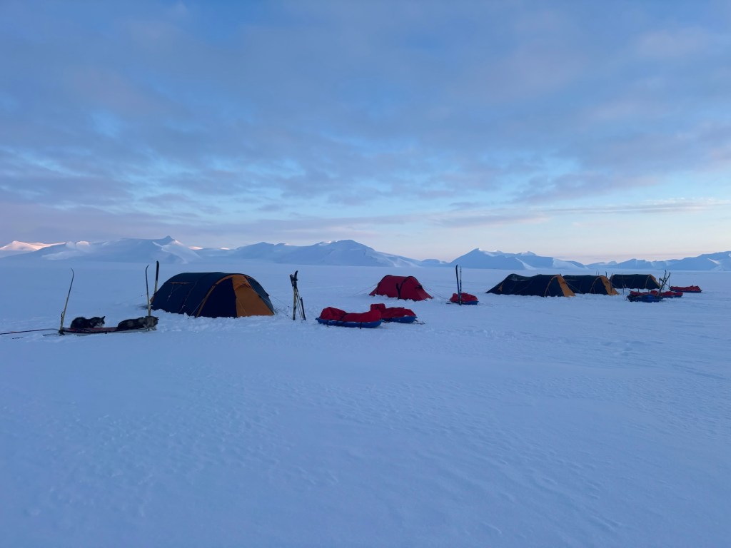 Det var sol og enda kaldere enn dagen før da vi våknet 10. april på dag 16 på vår tur fra sør til nord. Vi var kommet ca halvveis, og dagens mål var depoet.