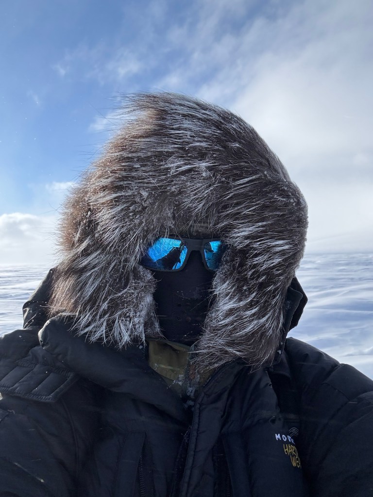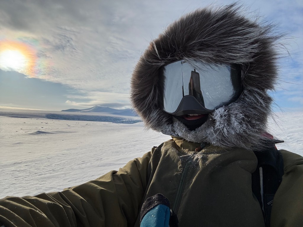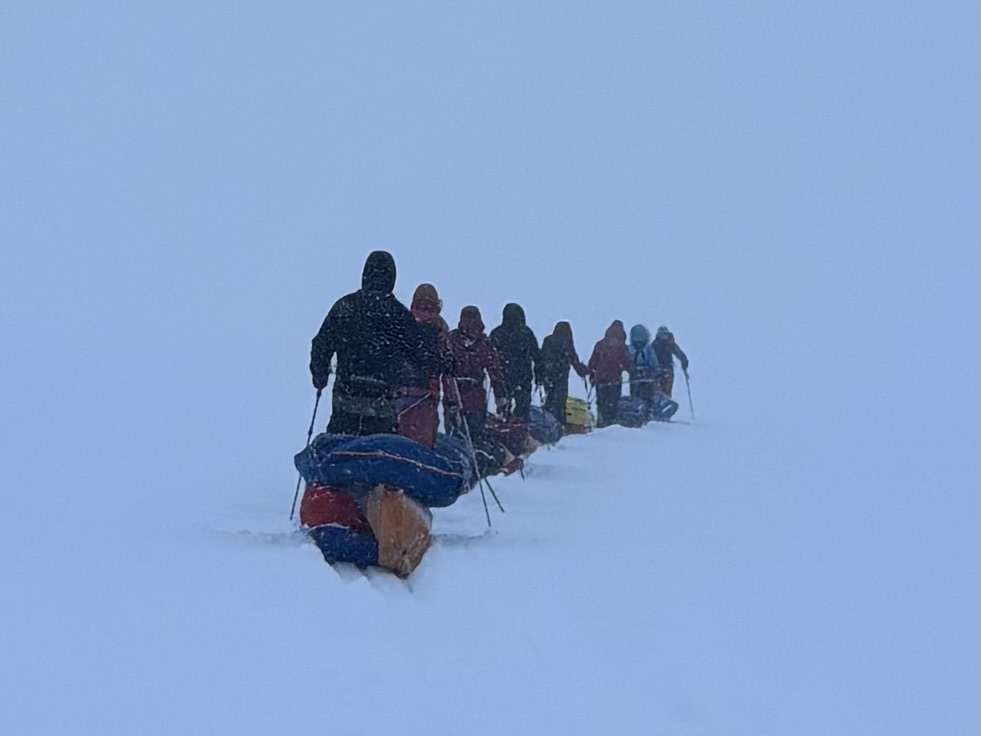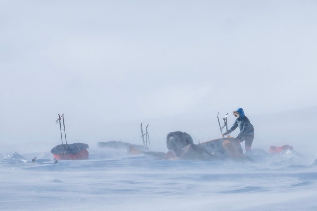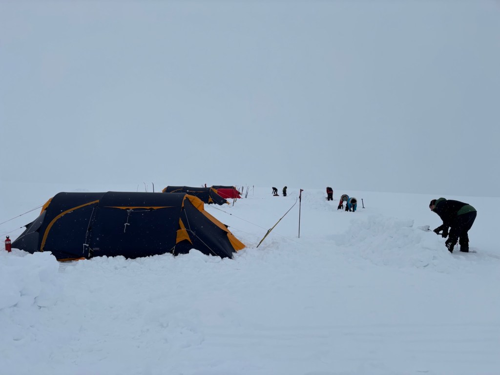 Det var sol og enda kaldere enn dagen før da vi våknet 10. april på dag 16 på vår tur fra sør til nord. Vi var kommet ca halvveis, og dagens mål var depoet.