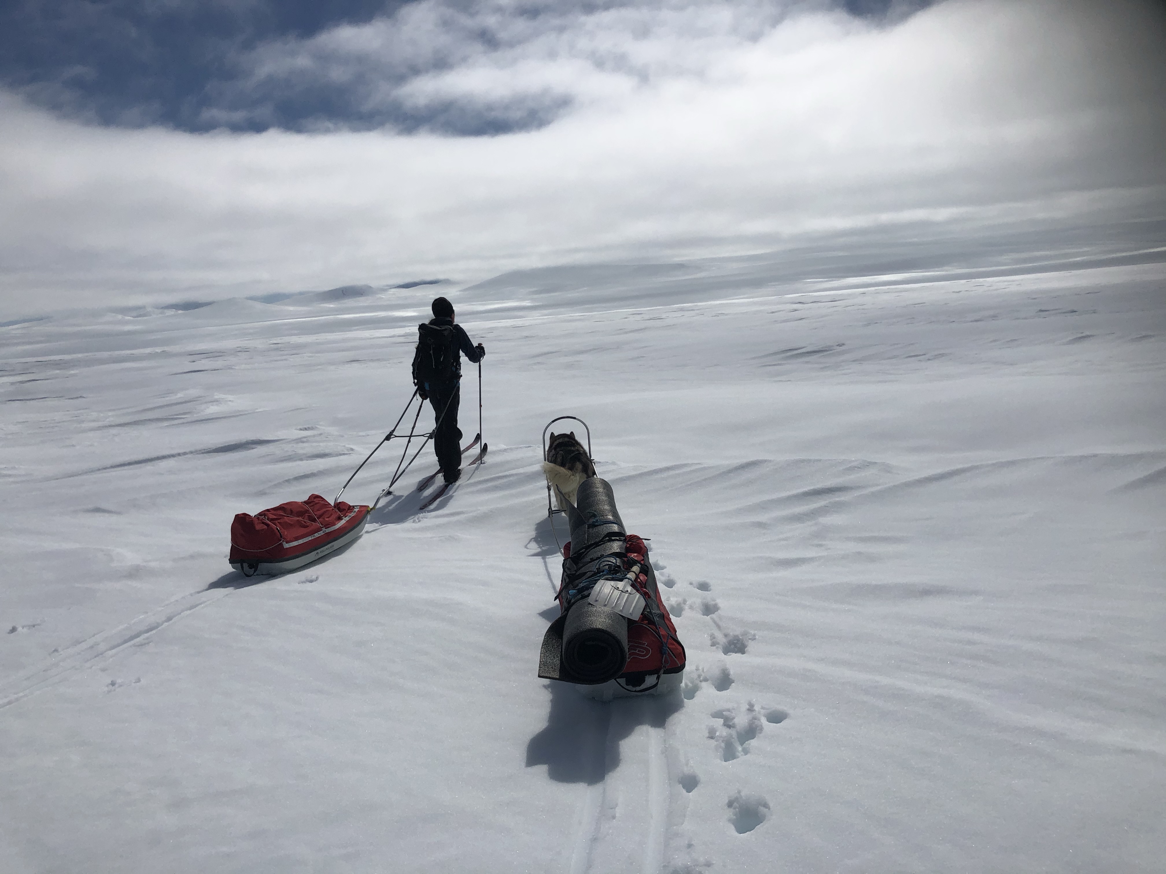 Teltet ble slått opp rett nedenfor Rana kommune sin høyeste topp, Snøtinden (1594 moh). Da var det ikke en sky å se, ingen vind, og rundt 10 varmegrader. GPSen viste 21 km.