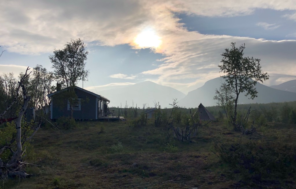 Etter 12 km kom jeg opp til Staddajåkkåstugorna. De eies og drives av tre samebyer. De kallet seg Badjelánnda Laponia Turism (BLT). Vi har tidligere vært veldig fornøyd når vi har leid hos de. Det ble jeg også denne gangen.