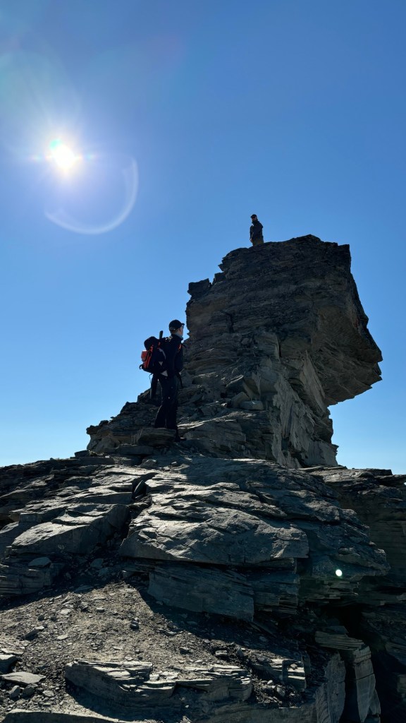 Etter hvert nådde vi toppen av Storgruvpiken. Utsikten var storslagen – Trollheimen bredte seg ut i vest, og ifølge Stig kunne man se helt til Snøhetta i sør på klare dager. Høsten viste seg fra sin beste side, og vi tok oss god tid til å nyte både utsikten og stillheten.